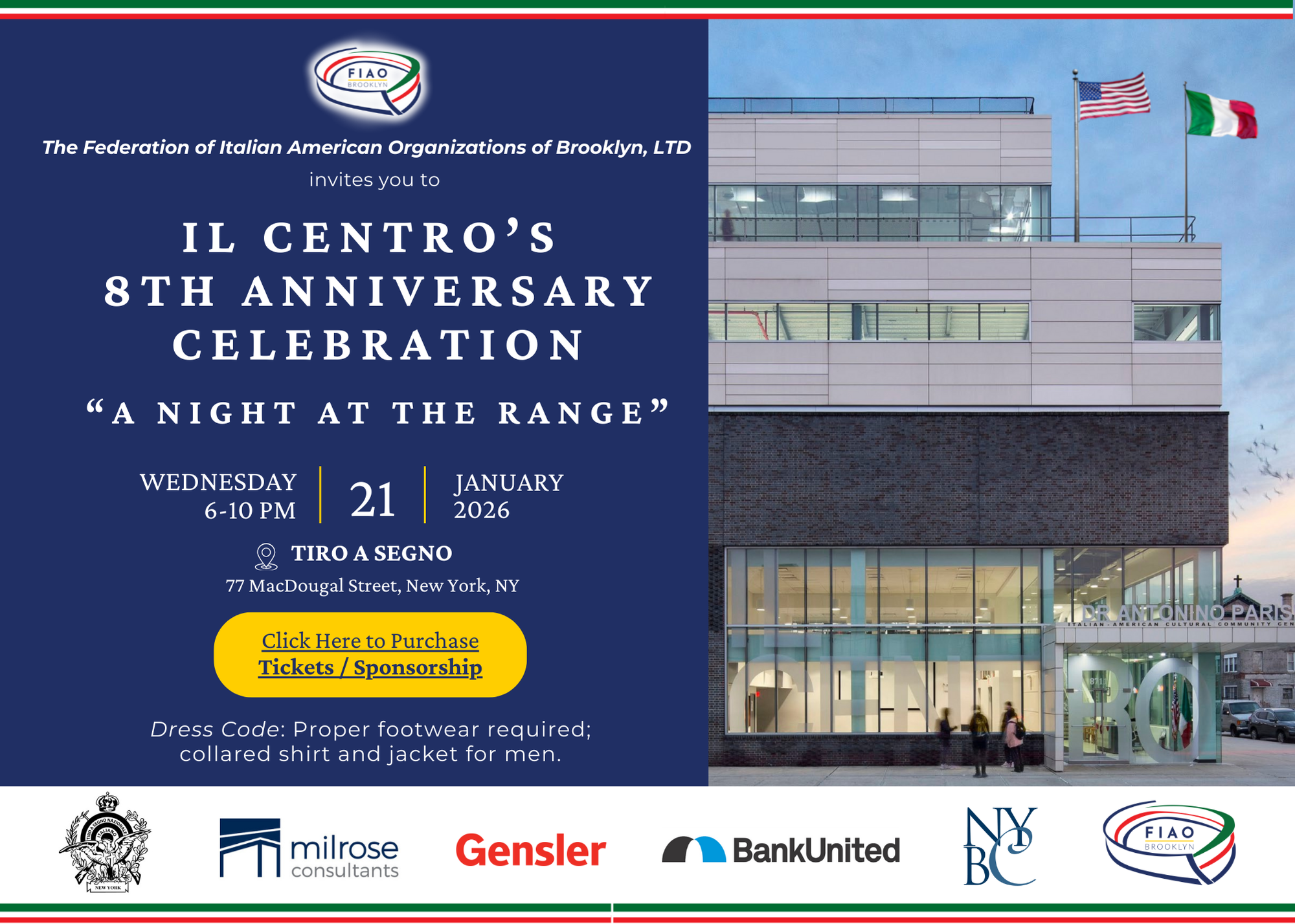 Tiro A Segno of New York 77 Macdougal St, New York, NY, United StatesJoin us for an unforgettable evening at Tiro A Segno on Wednesday, January 21st, as we celebrate the 8th Anniversary of Il Centro Community Center and support our noble mission […]